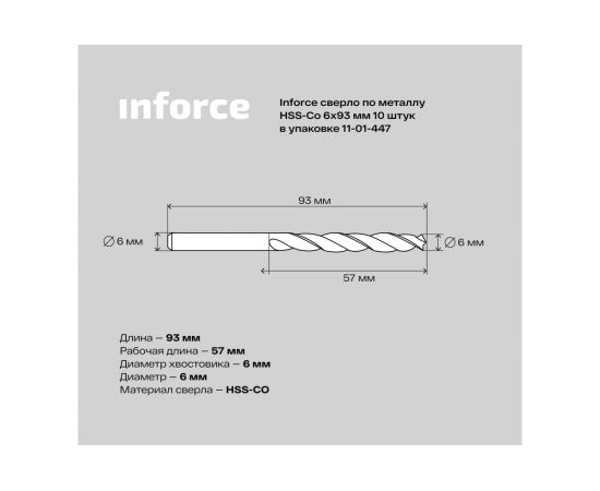 Сверло по металлу Inforce HSS-Co 11-01-447 6x93мм