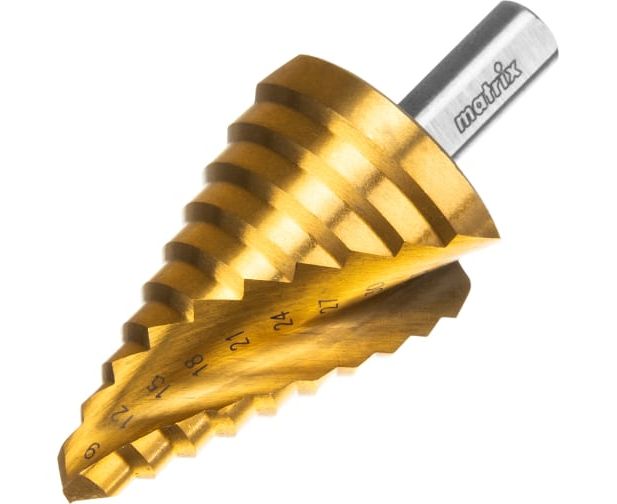 Сверло ступенчатое MATRIX 72358 9-12-15-18-21-24-27-30-33-36 мм, HSS, спирал. проф.