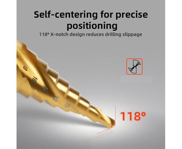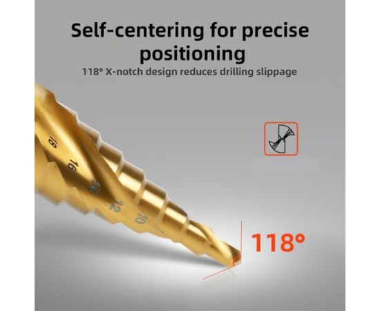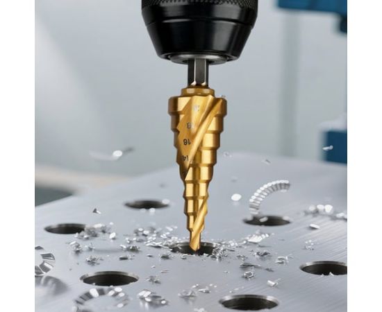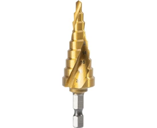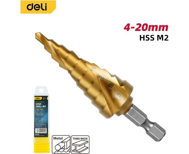 Сверло ступенчатое по металлу Deli DH-JTZ020-E2 4-20мм, HSS M2, спиральная канавка, шестигранный хвостовик
