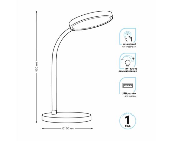 Светильник Gauss GT5031 настольный на подставке белый 8Вт