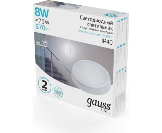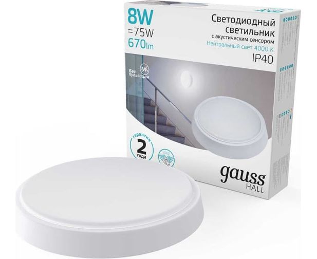 Светильник Gauss ЖКХ 193411208-OAS 8Вт 4000K белый датч.движения