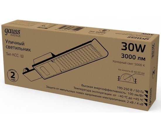 Светильник консольный Gauss 629534330 30Вт ламп.:30шт светодиод.лампа черный