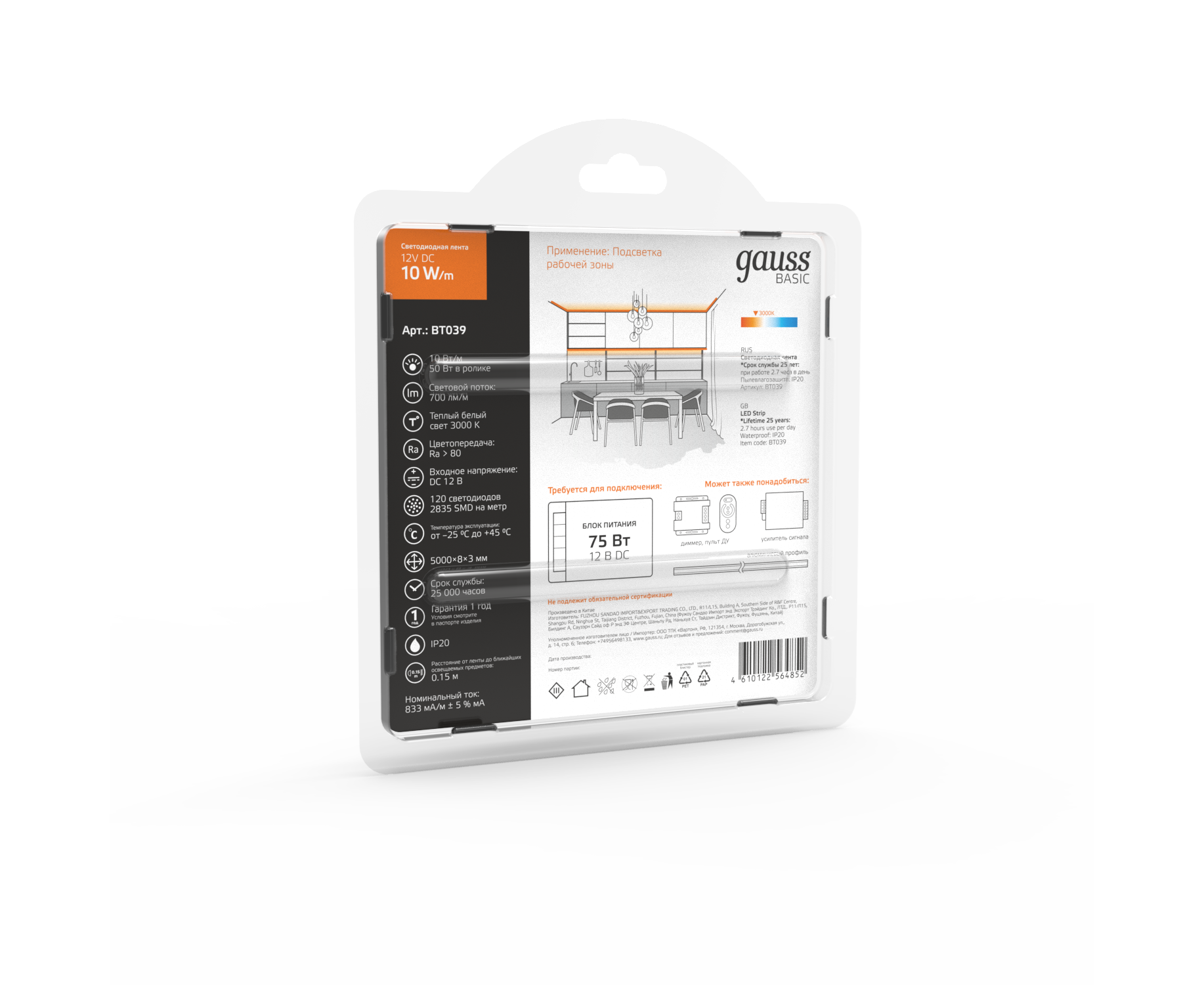 Светодиодная лента GAUSS Basic BT039 50Вт, 5м