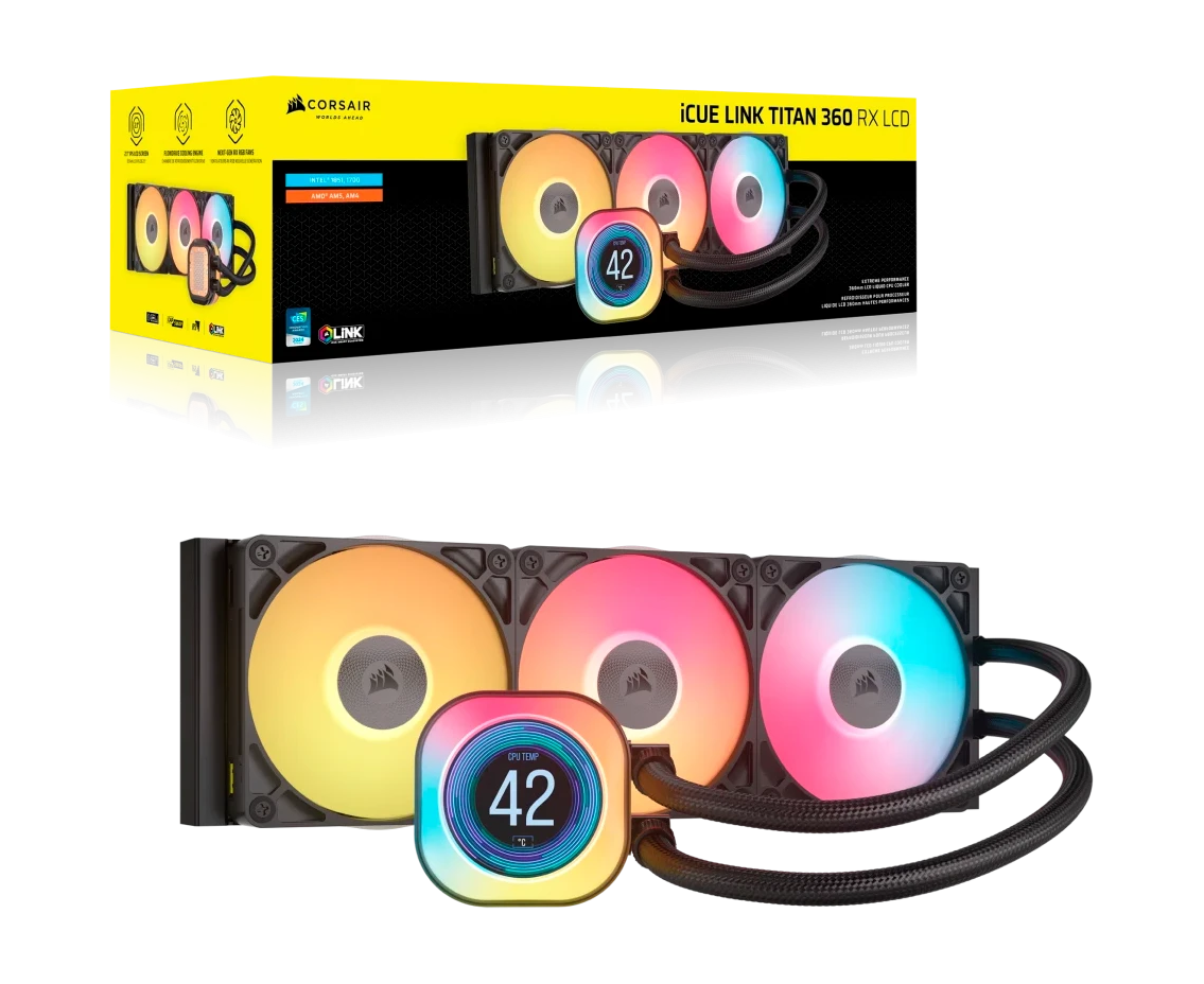 СВО Corsair iCUE Link Titan 360 RX LCD (CW-9061023-WW) (360mm, Black, RGB/ Fans 3x120mm, 73.5CFM, 36dBA)
