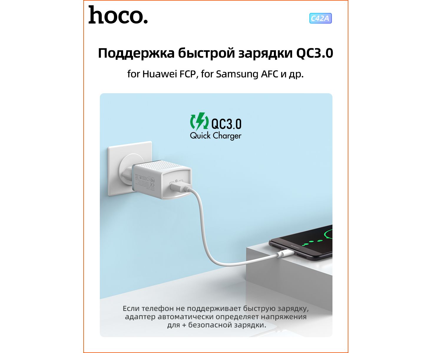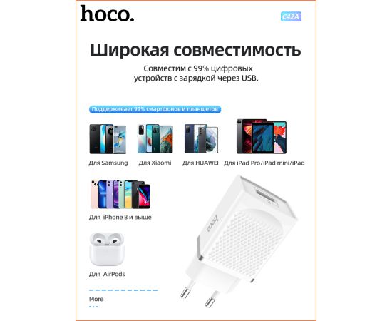 СЗУ Hoco C42A Vast power QC3.0 (AFC) single port, white