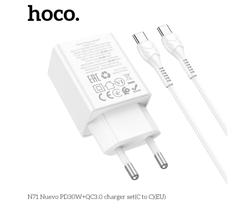 N71 Nuevo PD30W+QC3.0 зарядное устройство набор (C на C)(EU)