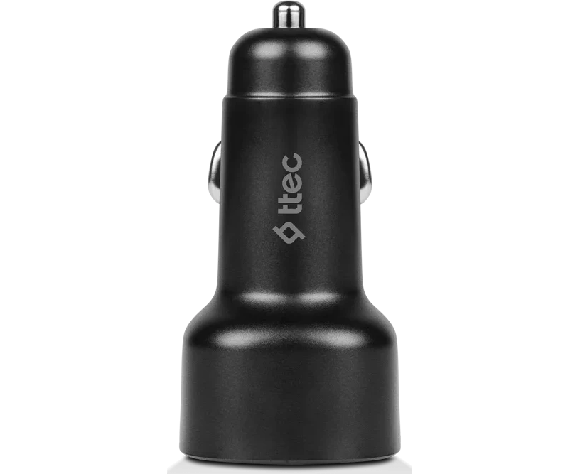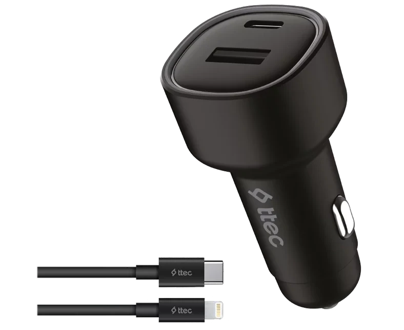TTEC SmartCharger Duo PD 48W Vehicle Fast Charger USB-C+USB-A With USB-C-Lightning Cable - Black