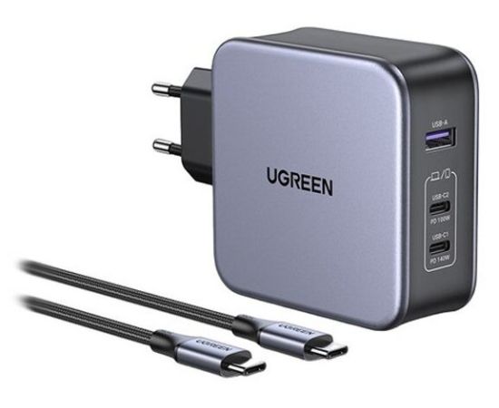 СЗУ Ugreen CD289 (90549) USB-A+2*USB-C 140W GaN Tech Fast Charger with C to C Cable 2м Black