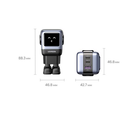 СЗУ UGREEN CD361 (25685B) USB-A+2*USB-C 65W Nexode Robot GaN Tech Fast Charger Gray