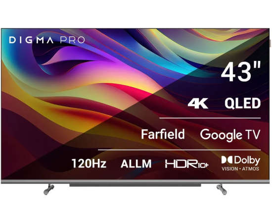 43" Телевизор Digma Pro QLED 43L черный QLED 3840x2160, 4K Ultra HD, 120 Гц, Wi-Fi, Smart TV, Google TV