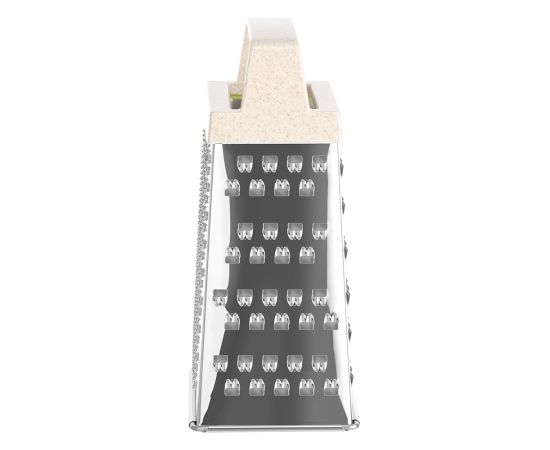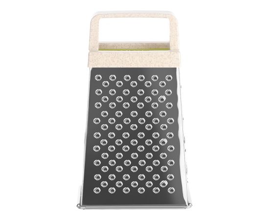 Удобная многофункциональная терка LARA поможет покрошить яйцо, дольку шоколада, орех, имбирь или снять кожуру мандарина. Для надежности использовали сталь повышенной жесткости 0,3 мм. Отделочный материал терки содержит рисовую шелуху. Приобретая данное изделие, вы вносите вклад в снижение потребления пластика.