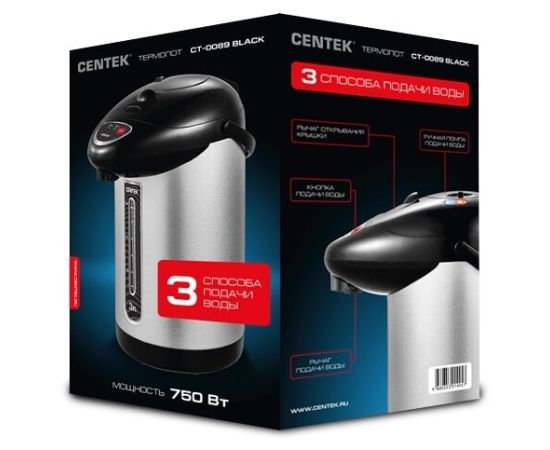 Термопот Centek СТ-0089 (черный) зл. 850Вт. 3 способа подачи