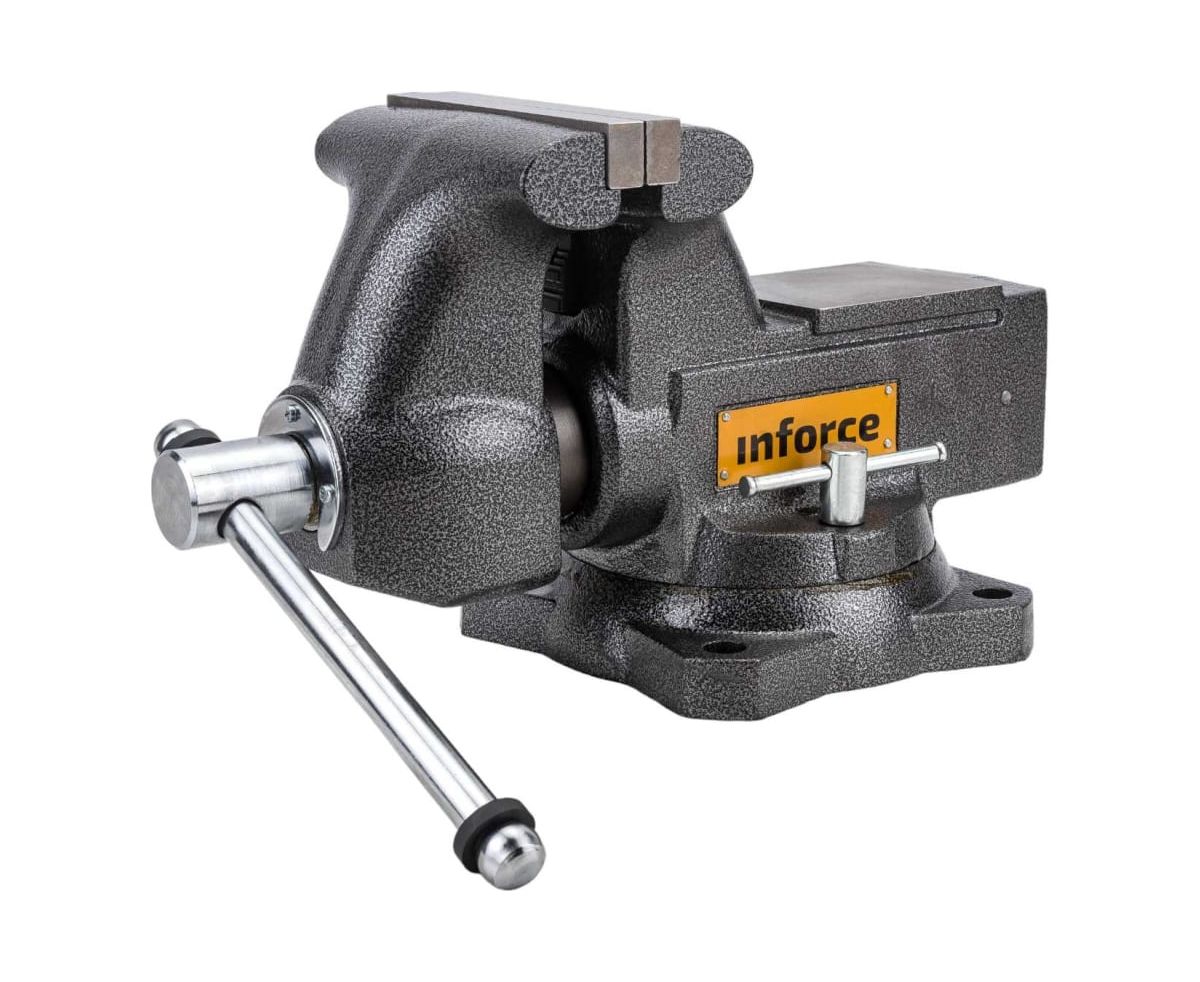 Поворотные слесарные тиски Inforce 165 мм 05-23-11 - надежный в работе зажимной инструмент. Устройство широко применяется в слесарных мастерских для обработки заготовок. Модель отличается высокой прочностью и устойчивостью к износу.