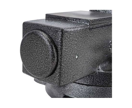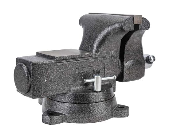 5.Тиски с поворотным механизмом на 360°. Прижимной механизм выполнен в виде 2-х прижимных пластин и 2-х усиленных прижимных винтов.