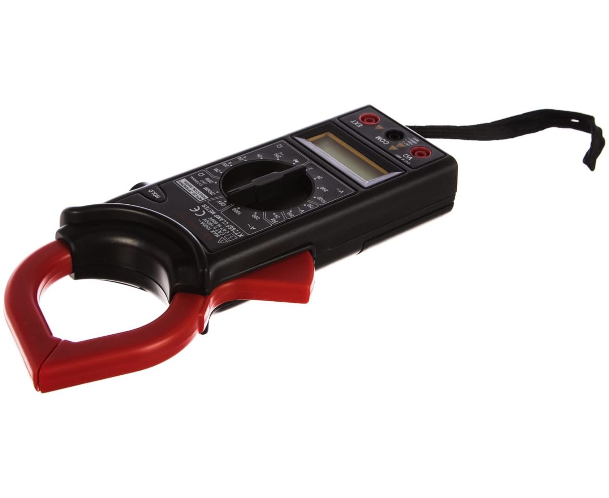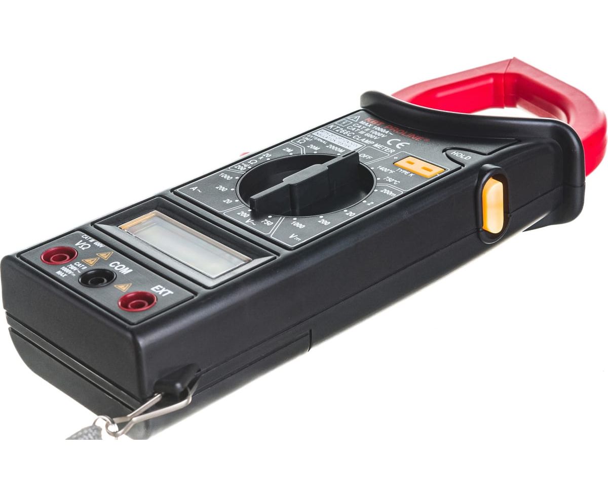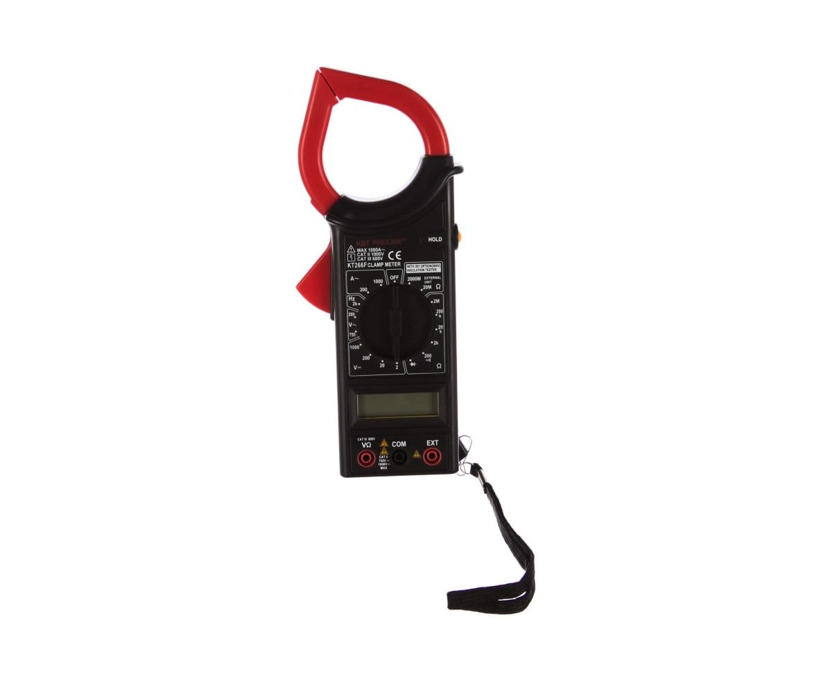 Цифровые токовые клещи КВТ KT 266C PROLINE 79132 измеряет переменный ток, напряжение, сопротивление и температуру.
