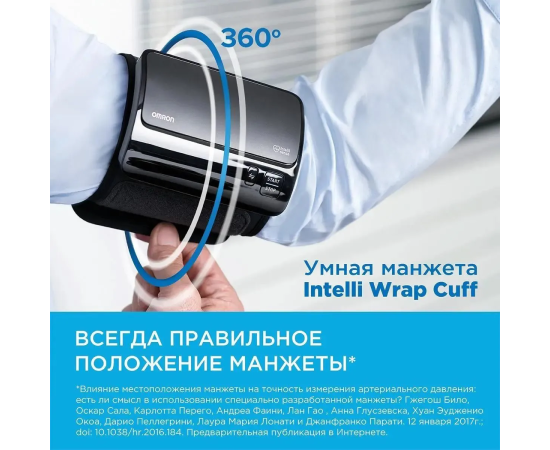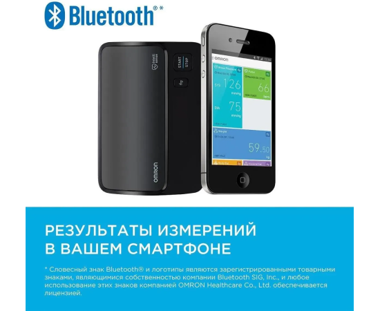 подключается к смартфону с помощью приложения Omron Connect для комфортного хранения и управления данными о состоянии здоровье.