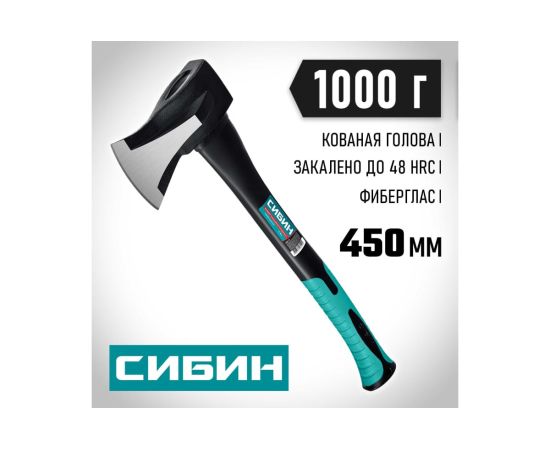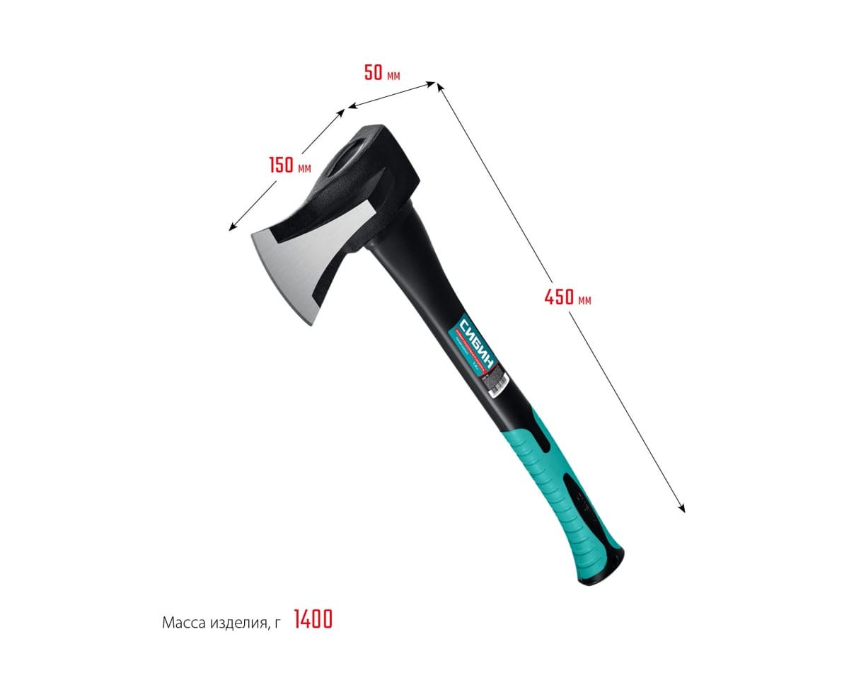 Топор-колун СИБИН Ушастый Фибергласс 1000/1400 г, 450 мм 2083-10 - надежный кованый инструмент для работы с древесиной. Предназначен для рубки, колки и тески древесины.