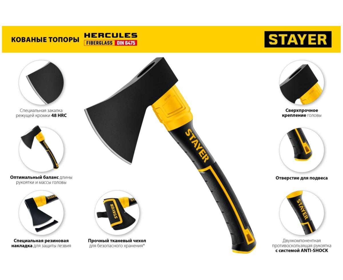 Топор STAYER Fiberglass (2062-12 z02) кованый