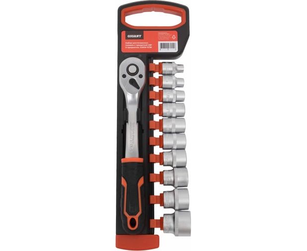 Торцевые головки Gigant GSRW-11/38 с трещоткой 3/8", 11 предметов