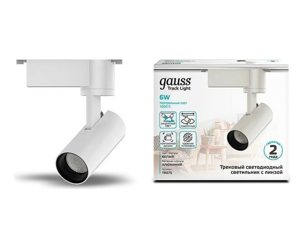 Трековая система GAUSS TR075, 6Вт, 4000К, белый нейтральный, белый