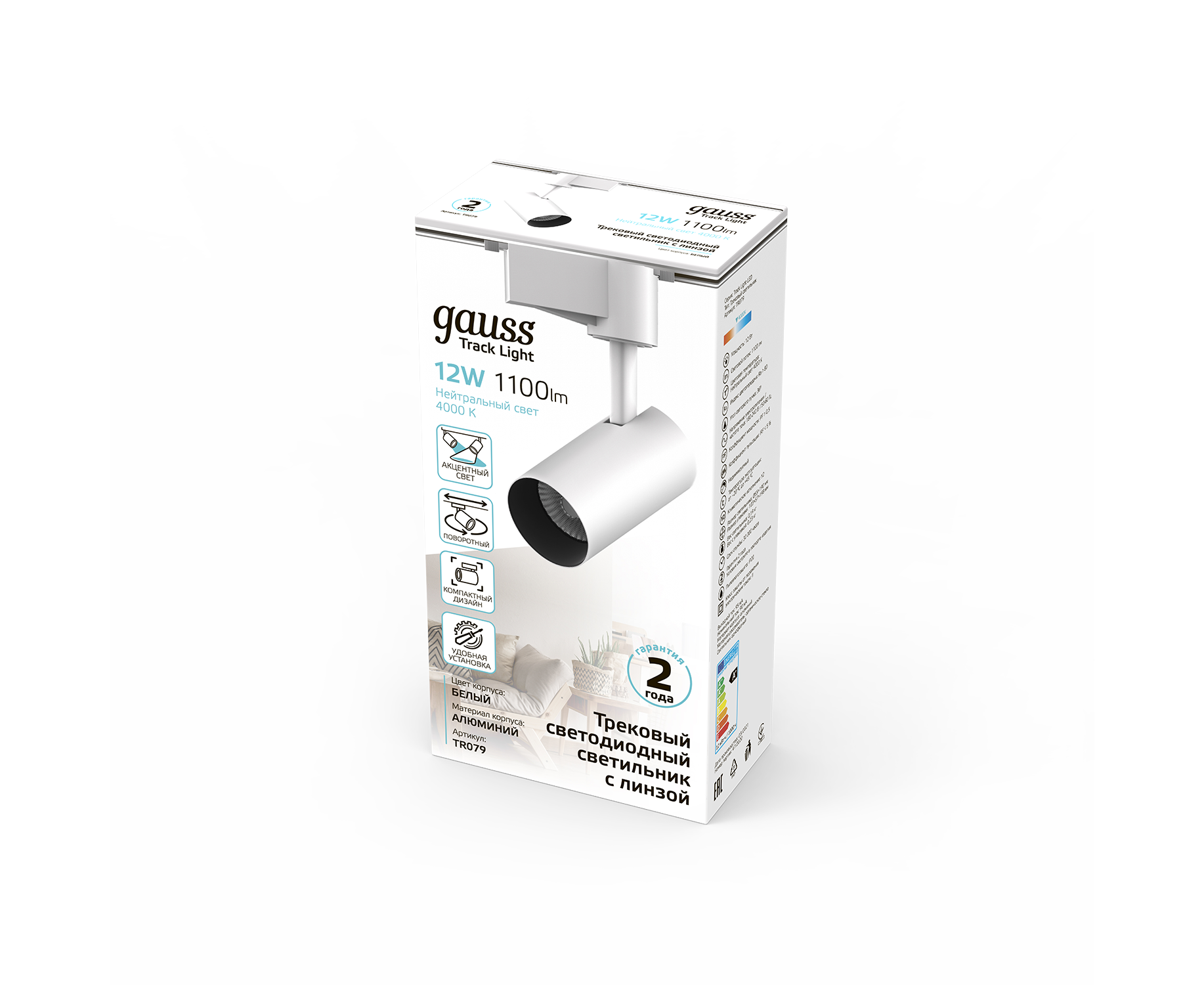 Трековая система GAUSS TR079, 4000К, белый нейтральный, белый