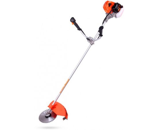 Купил сей агрегат за 4990р. В комплекте ранцевая сбруя,ёмкость для приготовления смеси(для этой модели маловата- на 1/2бака),головка с леской,трёхлопастной диск и диск от циркульной пилы.Собрал согласно инструкции.Всё очень просто.Завелась легко.Даже не заметил,как скосил сотки полторы невысокой травы.Проблем с подачей лески просто нет.Достаточно лёгкого удара о землю.Несмотря на солидный вес при работе усталости не чувствуется.Шум от движка ничуть не больше,чем у менее мощных моделей.Вибрации не заметно.До этого пользовался бензотриммером чемпион который отработал верой и правдой 6 лет .Ничего плохого сказать о нём не могу,но одно дело скашивать 5 соток,а другое-16,да ещё заросших.Сегодня косил диском сильно заросшую часть огорода.Кусты до 2,5см(толще не успели вырасти).,разнообразные лопухи и прочие буряки легли ровными рядами без сколько-нибудь заметного сопротивления. Производительность(в кв.м.)при работе диском меньше,чем при работе леской,но леской нельзя косить кустарник,а диск валит его на раз .