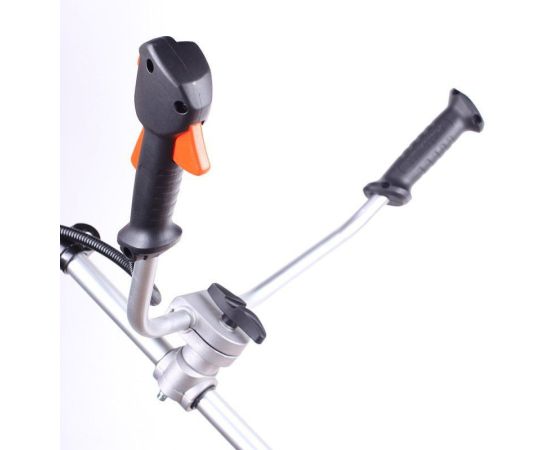 В прошлом сезоне мне очень понравилось работать этим триммером, поэтому решил оставить отзыв - вдруг кому-то окажется полезен. Во-первых, мне понравился плечевой ремень и регулируемая "велосипедная" ручка - немного настроить под себя и работать становится вполне комфортно. Двигатель 2,5 л.с. и совмещение лески с 3-х лопастным ножом позволяют достаточно быстро скосить всю траву на участке, в т.ч. жесткую.