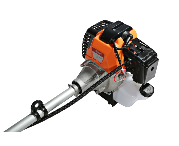 Двигатель триммера имеет хонинговую поршневую группу с покрытием из твердого хрома. Он хорошо сбалансирован и характеризуется стабильной работой во всех положениях без потери мощности и небольшим расходом топлива. Низкий уровень шума позволяет использовать инструмент как в утренние, так и в вечерние часы, не мешая окружающим людям. Оптимизированный редуктор обладает повышенной стойкостью к механическому воздействию – он без труда справляется с любой растительностью. Топливный бак имеет полупрозрачные стенки из пластика, что упрощает контроль за уровнем горючего.