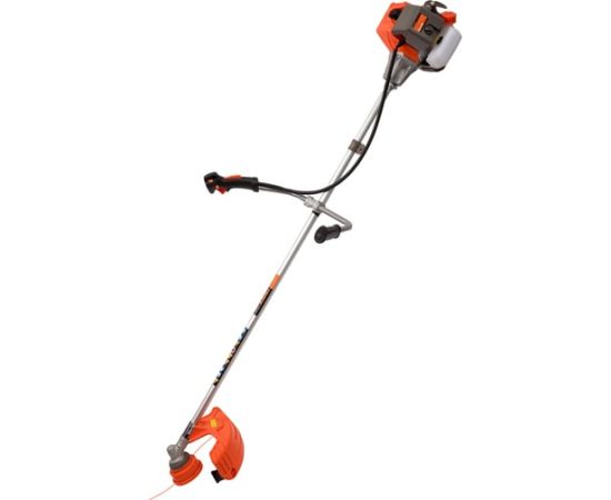 Оснащенный двухтактным двигателем с верхним расположением, он обеспечивает мощность в 0.900 кВт (1.250 л.с.) и объем двигателя 33 см³, что позволяет справляться с различными задачами по скашиванию. Прямой приводной вал и U-образная велосипедная ручка обеспечивают удобство в управлении и маневренность.