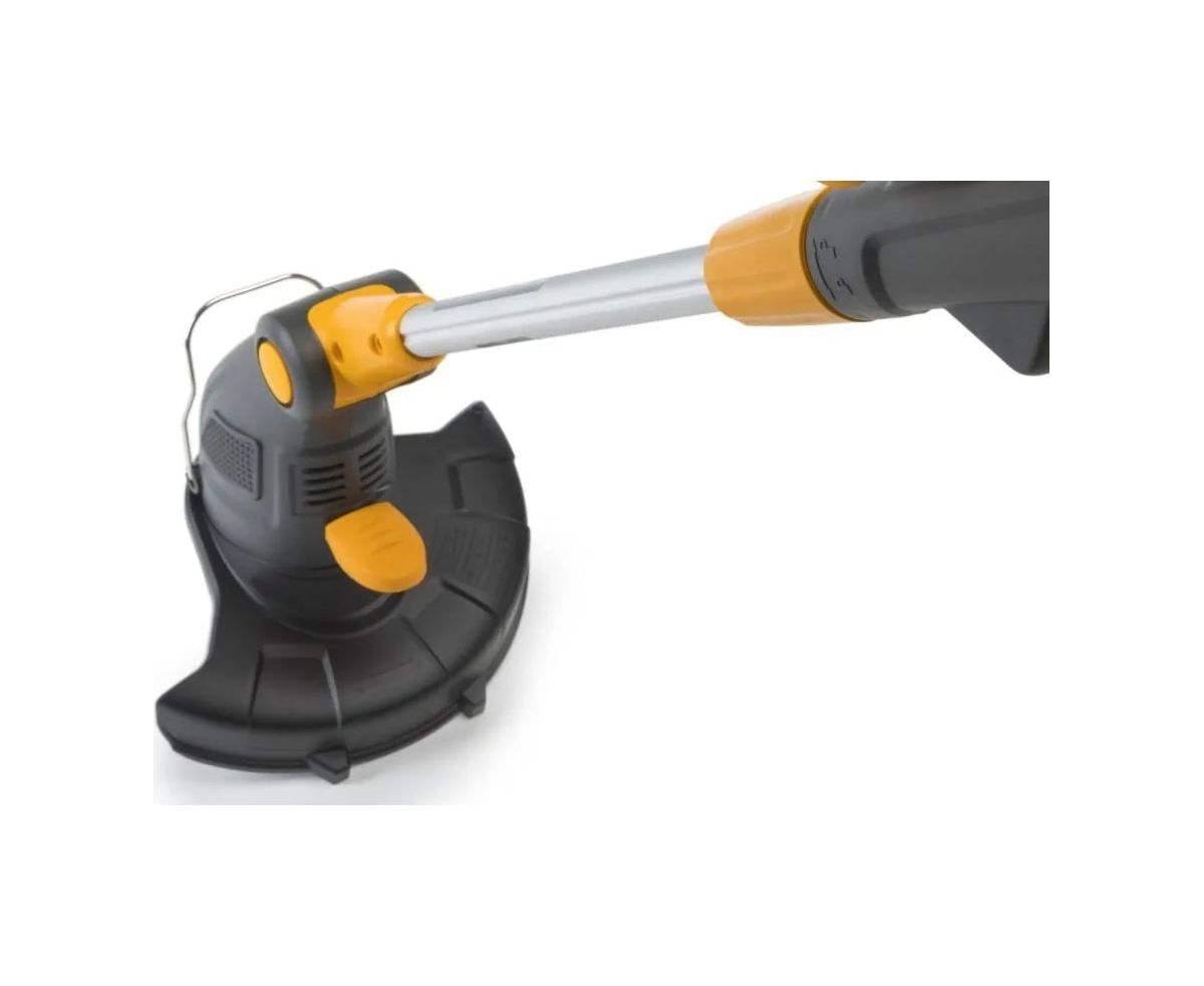 Модель имеет регулируемый телескопический вал, вращающуюся режущую головку и эффективный электродвигатель мощностью 600 Вт.