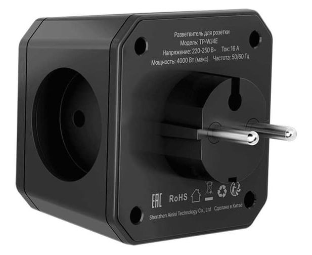 Тройник AGNI TP-WJ4E-black 4 розетки, 16А, 4000Вт, 220-250В, черный