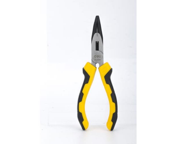 Удлиненные плоскогубцы DELI dl2306 с изогнутыми губками, 160 мм, угол загиба губок 30, сталь crv, двухкомпонентная ручка 108826 используются в ремонтных, слесарных, монтажных других работах для захвата, удержания, сгибания заготовок, деталей.
