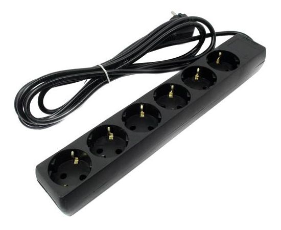 сетевой удлинитель, 6 розеток, максимальная мощность нагрузки 2.2 кВт, 5 м, чёрный
