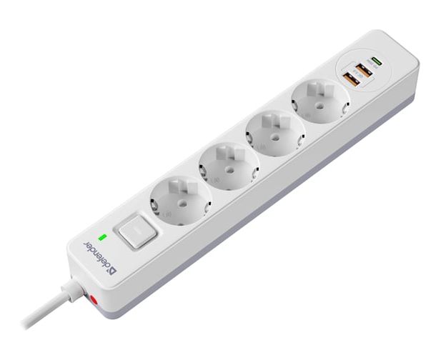 Сетевой фильтр DEFENDER с сетевым фильтром DFS 145 5 м, белый, 4розетки, USB+TypeC (99435)