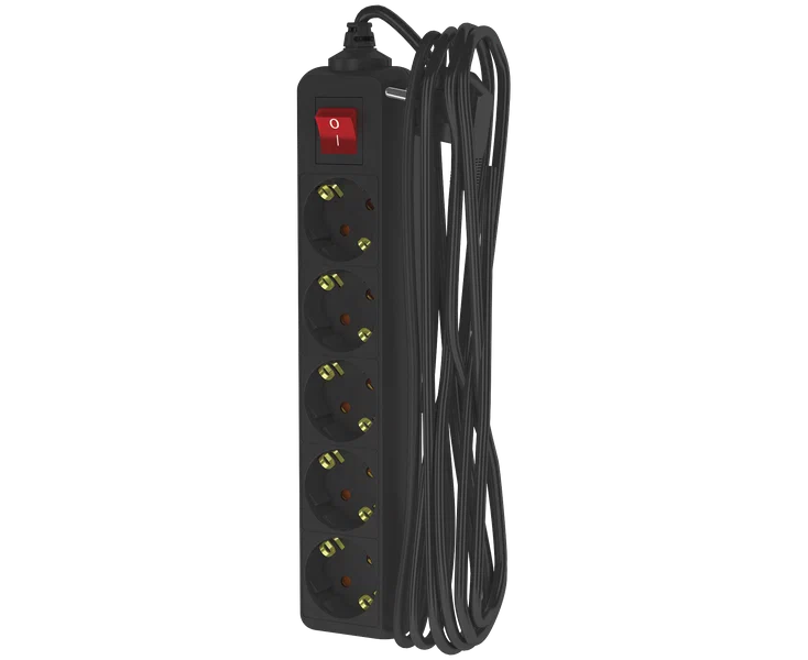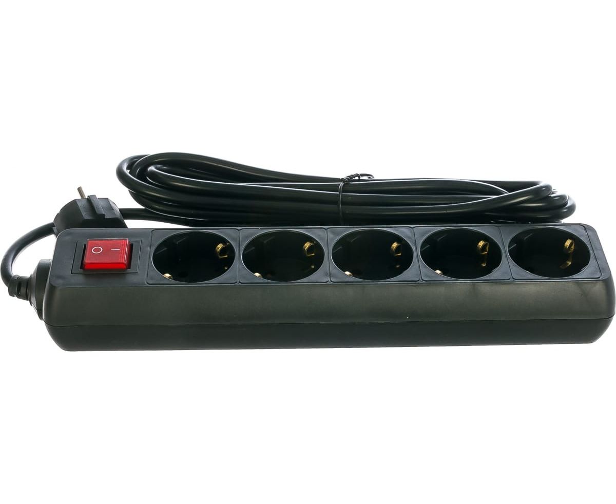 Удлинитель сетевой ФОТОН 22731 16-55ЕS, 5м, 5 розеток, 16А, с выключателем, с заземлением, черный