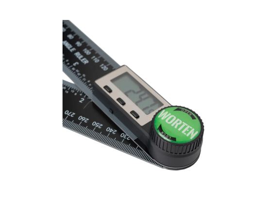 Угломер электронный батарея CR2032 IM КА-90000334 WORTEN с линейкой предназначен для измерения внутренних и наружных углов в любой плоскости. Подойдет, как профессиональным строителям, так и просто домашним мастерам в сфере деревообработки, строительства, черчения и других задач. Датчик угломера позволяет осуществлять измерение угла в диапазоне от 0 до 360 градусов. Конструкция угломера позволяет плотно прикладывать его к поверхности. Подходит для деревообработки, строительства, черчения и других областей. Угломер можно зафиксировать под любым углом, повернув ручку фиксации. А нажатие кнопки HOLD удерживает показания. Батарейка CR2032 (входит в комплект), обеспечивает длительное время автономной работы. Угломер прекрасно подойдет для строителей, дизайнеров, мебельщиков и всех, кто ценит точность и надежность. Поворотный механизм позволяет применять прибор для замера различных углов и поверхностей. Прибор оснащен ЖК дисплеем. Идеальный подарок для плотников, архитекторов, любителей DIY и т.д.