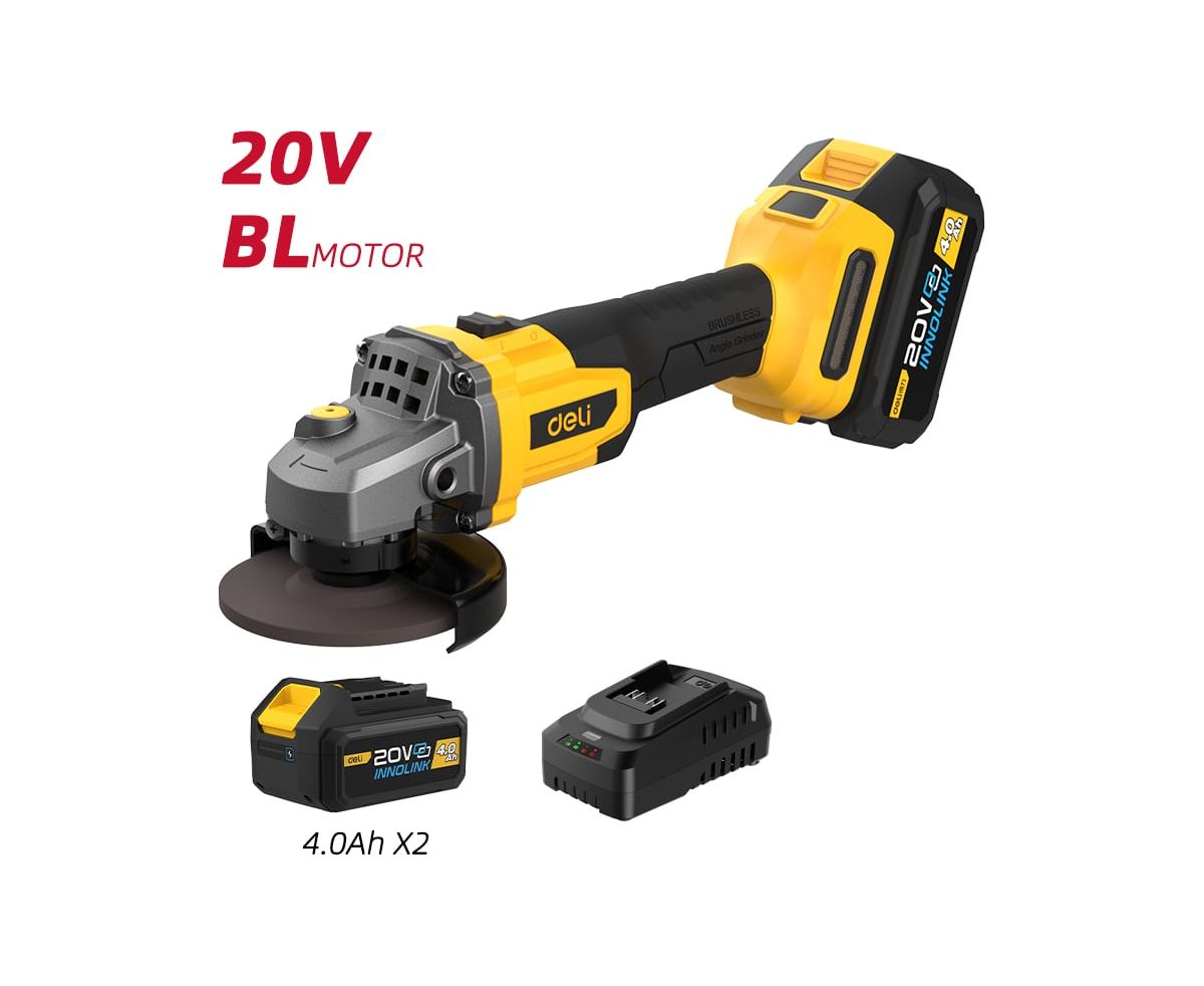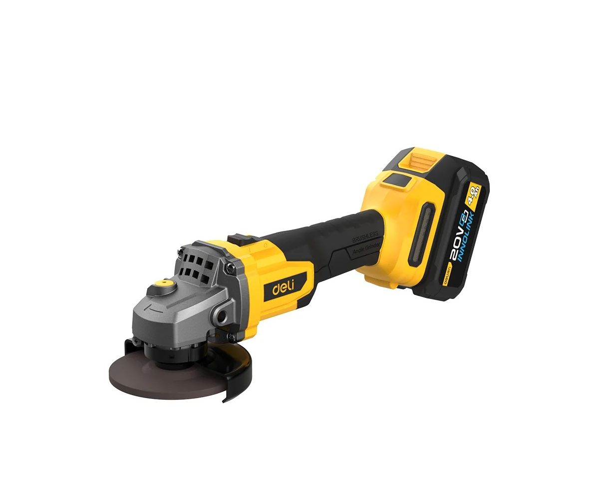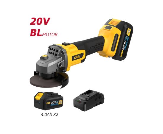 Угловая шлифмашина аккумуляторная Deli DC601 с АКБ и ЗУ, 20В, 115мм, М14, 3500/6000/8500об/мин, сумка