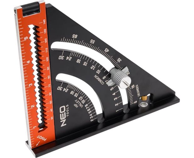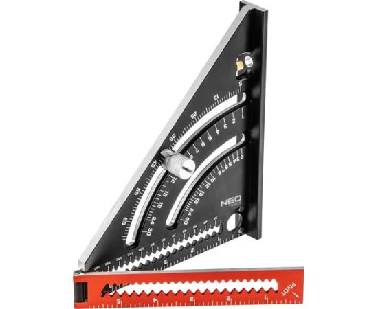 Угольник NEO Tools 72-105 алюминиевый 150 мм, с подошвой + складная линейка 160 мм, магнит