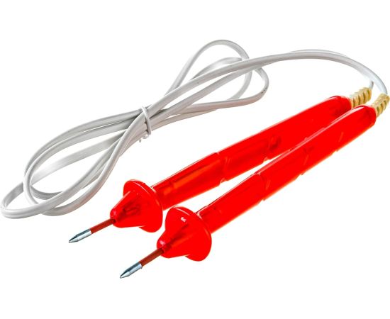 Указатель низкого напряжения Антиток УНН-1Д 40-1000В 157697 выполнен в двухполюсном исполнении и состоит из двух корпусов, содержащих элементы электрической схемы. Корпуса указателя соединены между собой гибким проводом. Электрическая схема двухполюсного указателя напряжения имеет контакты-наконечники и неоновой лампы в корпусе изделия, обеспечивающая визуальную индикацию наличия напряжения. Определение наличия напряжения следует производить путем касания контактами-наконечниками токоведущих частей. Свечение обоих светодиодов свидетельствует о наличии переменного тока, свечение одного из них определяет наличие напряжения постоянного тока, причем светящийся светодиод соответствует положительному потенциалу.