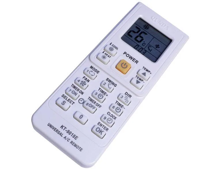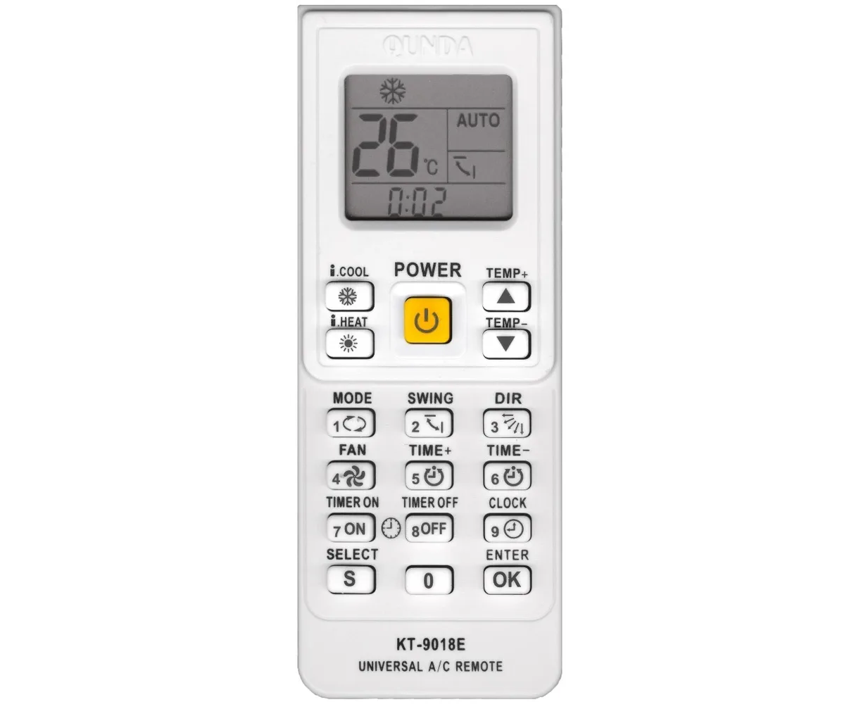 Пульт KT-9018E - универсальный пульт для кондиционеров: AKIRA, AUX, AUCMA, AIDELONG, AITE, AOLI, AOKE, BAIXUE, BEIJINGJINGDIAN, BOERKA, BORLER, BOSHIGAO, BOSHI, BIG-THUMB, CAIXING, CARRIER, CHANGLING, CHANGHONG, CHANGFENG, CHENGYUAN, CHUANGHUA, CHUNLAN, CHIGO, CONROWA, CORONA, CHANGFU, DAEWOO, DAIKIN, DAJINXING, DAOIAN, DONGXINBAO, DONGXIA, DUNAN, ELECTROLUX, FEILU, FEIGE, FRESTECH, FUJITSU, GREE, GALANZ, GOLDSTAR, JAXX, GEER, GLEE, GUQIAO, GUANGDA, HAIER, HICON, HITACHI, HISENSE, HONGYI, HUABAO, HUALING, HUAGAO, HUAWEI, HUAKE, HUAMEI, HUANGHE, HUIFENG, HYINDAI, INYCIN, JIALE, JIANGNAN, JIMSTAR, JINBEIJING, JINDA, JINSONG, JOHNSO, KANGLI, KELONG, KLIMATAIR, KONKA, KRIS, KT02_D001, KT02_D002, KTY001, KTY002, KTY003, KTY004, KTY005, LIANGYU, LG, LITTLESWAN, LITKEAIR, LOREN-SEBO, MCQUAY, MD, MEILING, MINGXING,BOYIN, MITSUBISHI, NATIONAL, NISO, NIKKO, PANSONIC, PANDA, PINSHANG,XINHUABAO, QIXING, RAYBO, ROWA, RICAI, RIJIANG, SACON, SANZUAN, SANYO NEC, SAMSUNG, SAST, SERENE, SHARP, SHAMEI, SHANXING, SHANGLING, SHENBAO, SHENGFENG, SHENGFENG/FEILU, SHINING, SHINCO, SHUANGLU, SIGMA, SOGO, SOVA, SONGXING, SOYEA, SRTC, SUNBURG, TCL, TECO, TIANYUAN, TIANJINKONGTIAO, TOBO, TONGLI, TOSHIBA, TOYO, TRANE, UNI-AIR, UTTLEDUCK, WANBAO, WEILI, WEITELI, WHIRLPOOL, WUFENG, XILENG, XINLE, XINLING, XINGHE, YAIR, YAOMA, YIDONG, YORK, YUTU, ZHONGYI, ZUODAN и другие.