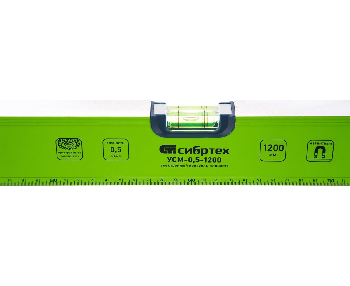 Алюминиевый магнитный уровень Сибртех УСМ-0,5-1200 34118 длиной 1200 мм, фрезерованный, с рукоятками и 3 глазками, позволяет оценить ровность поверхностей и измерить отклонения относительно угла 45 градусов. Широко используется мастерами на строительных площадках при облицовке и отделке помещений, монтаже конструкций.Для определения отклонения вертикали 90 градусов необходимо использовать пузырьковую ампулу только в верхнем положении уровня. Только базовая поверхность является рабочей (противоположная ампуле 180 градусов).