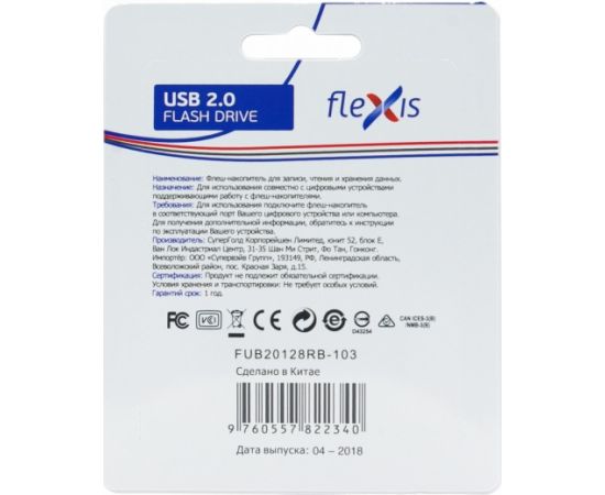Флэш-драйв FLEXIS RB-103, 128GB, USB2.0, черный