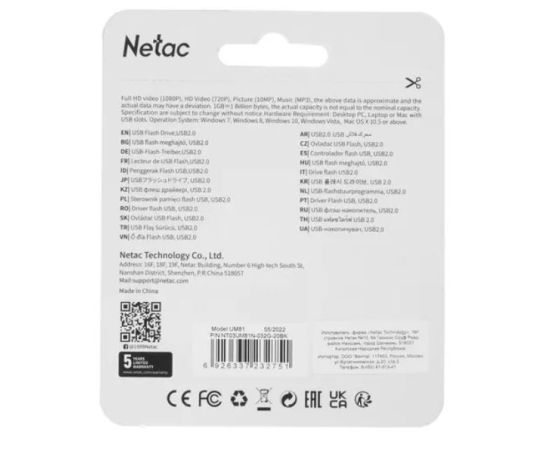 USB-флешка Netac UM81 (NT03UM81N-032G-20BK) 32GB USB2.0, черный