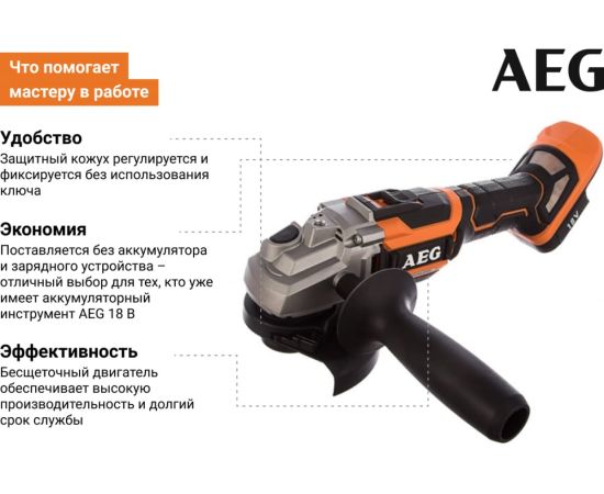 УШМ AEG BEWS18-125BL-0 бесщеточная без акк (4935464414)