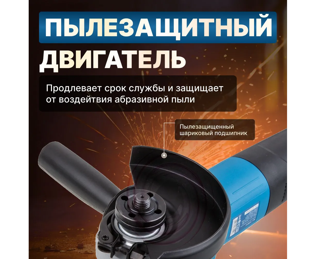 Угловая шлифмашина BULL WS 1207 329010 оснащена мощным пылезащитным двигателем, благодаря этому обеспечивается высокая производительность и долгий срок службы.