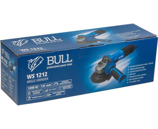 Шлифмашина угловая (болгарка) BULL WS 1212 (1333513) оснащена долговечным и производительным пылезащищенным двигателем 1200 Вт.