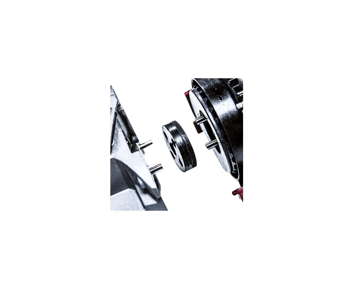 Работа с машинкой очень комфортна, благодаря компактной конструкции с эргономичной мягкой рукояткой, дополнительной двухпозиционной ручке, а также разделению двигателя и редуктора. Наличие гайки быстрой фиксации устраняет необходимость в торцевом гаечном ключе для замены режущего диска: замена происходит быстро и без использования инструментов. Защитный кожух с быстрой регулировкой обеспечивает гибкую работу. Инструмент поставляется с аккумулятором 4 Ач и зарядным устройством 3А.