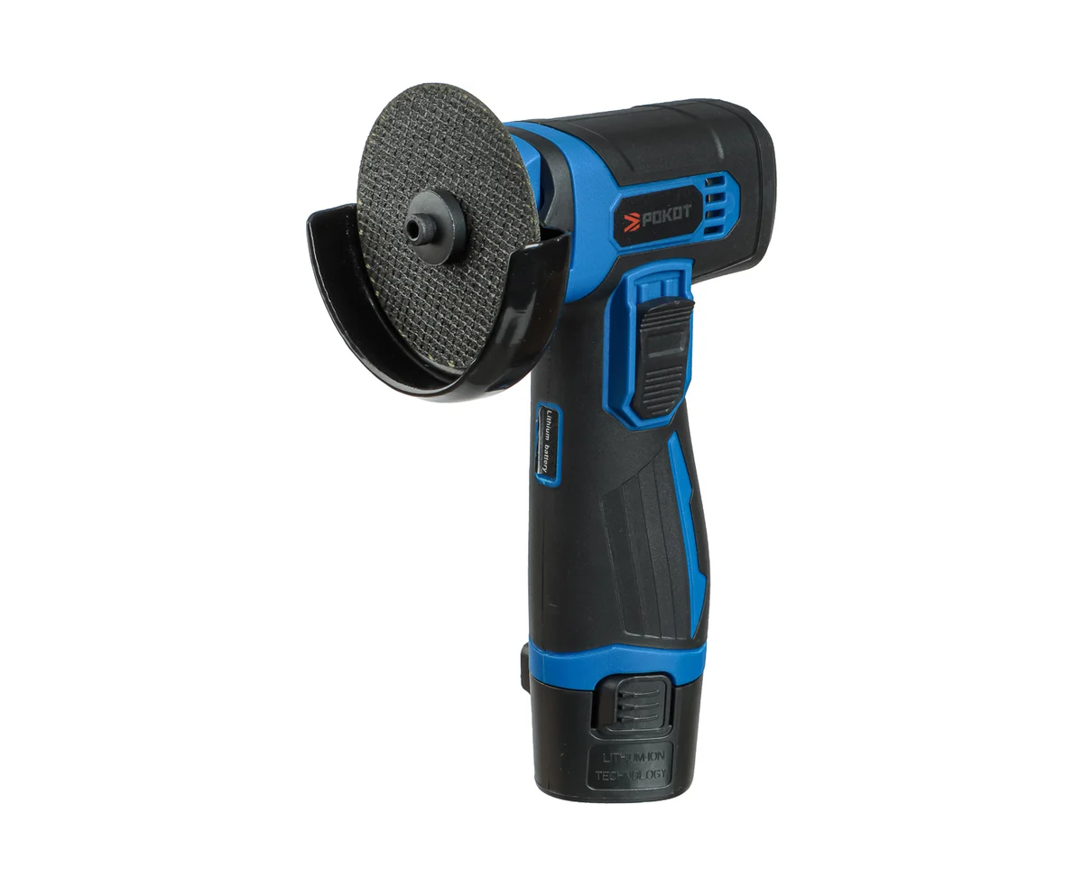 Угловая шлифовальная машина РОКОТ аккумуляторная мини, 12 В – это компактный электроинструмент, предназначенный для полировки, шлифовки, резки и других типов обработки различных поверхностей. Мощность – 450 Вт. Диаметр диска – 75 мм. Скорость вращения – 19500 об/мин. Инструмент надежный, производительный, абсолютно автономный, удобно лежит в руке и имеет невысокий вес. Защитный кожух предотвращает попадание мелких частиц в глаза, а также защищает руки от повреждений в случае отлома диска. Емкость аккумулятора 2.0 А*ч. Батарея быстро заряжается. В комплекте идет шестигранный ключ.