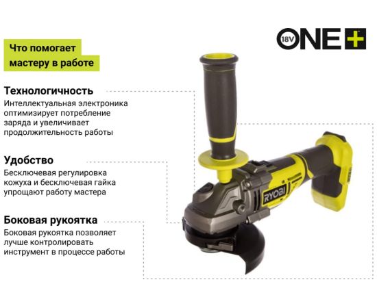 УШМ Ryobi One+ R18AG7-0 (5133002852) бесщеточная (без АКБ и ЗУ)