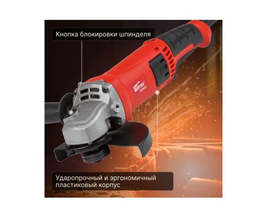 Угловая шлифмашина WORTEX AG 1512 E AG1512E0029 оснащена мощным двигателем 1400 Вт. Предусмотрена регулировка оборотов. Инструмент имеет бронированный ротор и статор, усиленный подшипник, повышенную твердость шестерен, ударопрочный корпус, быстросъемный кожух.